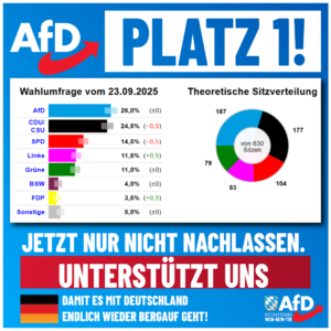 Wir haben es geschafft: Zum ersten Mal liegt die AfD mit 26 % in einer bundesweiten Umfrage ganz vorne – noch vor der CDU/CSU! 🚀