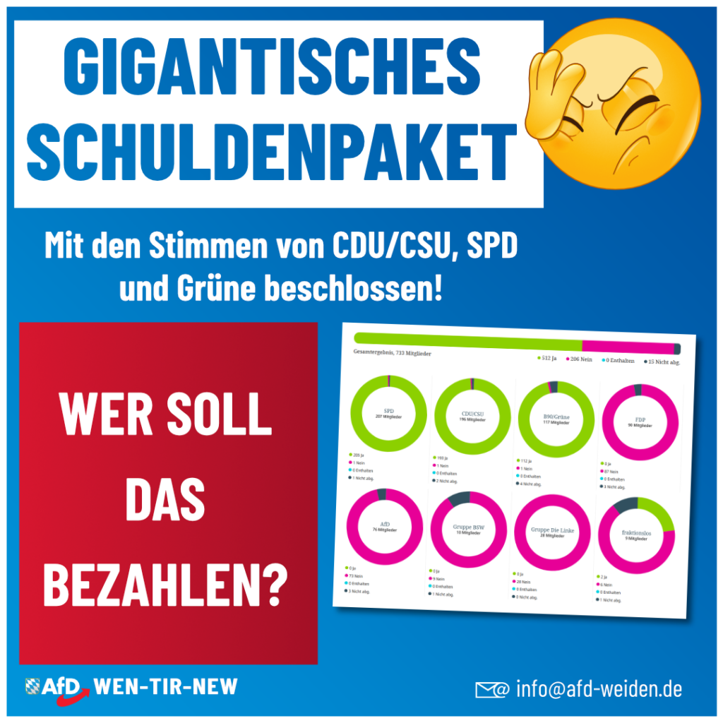 Der Bundestag hat heute mit den Stimmen von CDU/CSU, SPD und Grünen das größte Schuldenpaket in der Geschichte der Bundesrepublik beschlossen. Friedrich Merz hat damit eine noch nie dagewesene Schuldenpolitik […]
