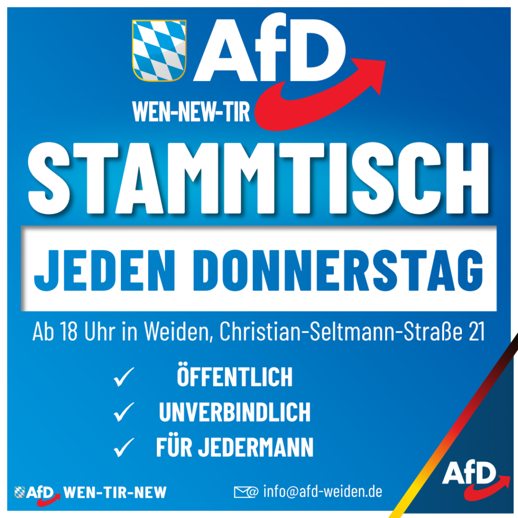 Mehr lesenAfD Stammtisch in Weiden. Jeden Donnerstag