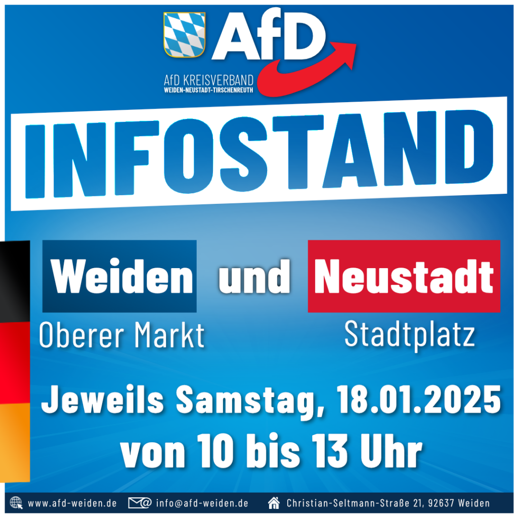 Infostand am Samstag, 18.01.2025 in Weiden und Neustadt