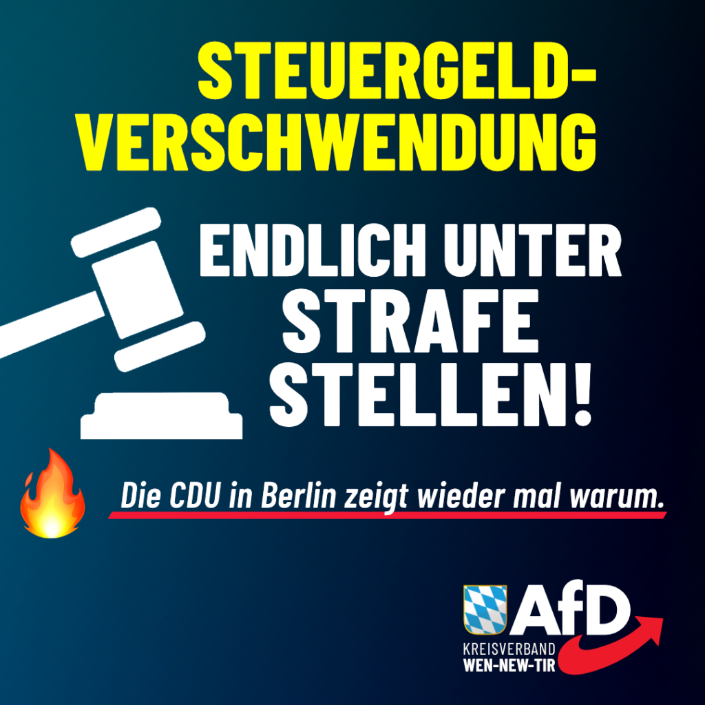 🔥 Ex-Kultursenator Joe Chialo (CDU) soll Millionen an Steuergeldern willkürlich verteilt haben. Steuergeldverteilung ohne Antrag, ohne Prüfung! Deshalb muss Steuergeldverschwendung endlich als Straftat gelten. Nur wir haben genau das in […]