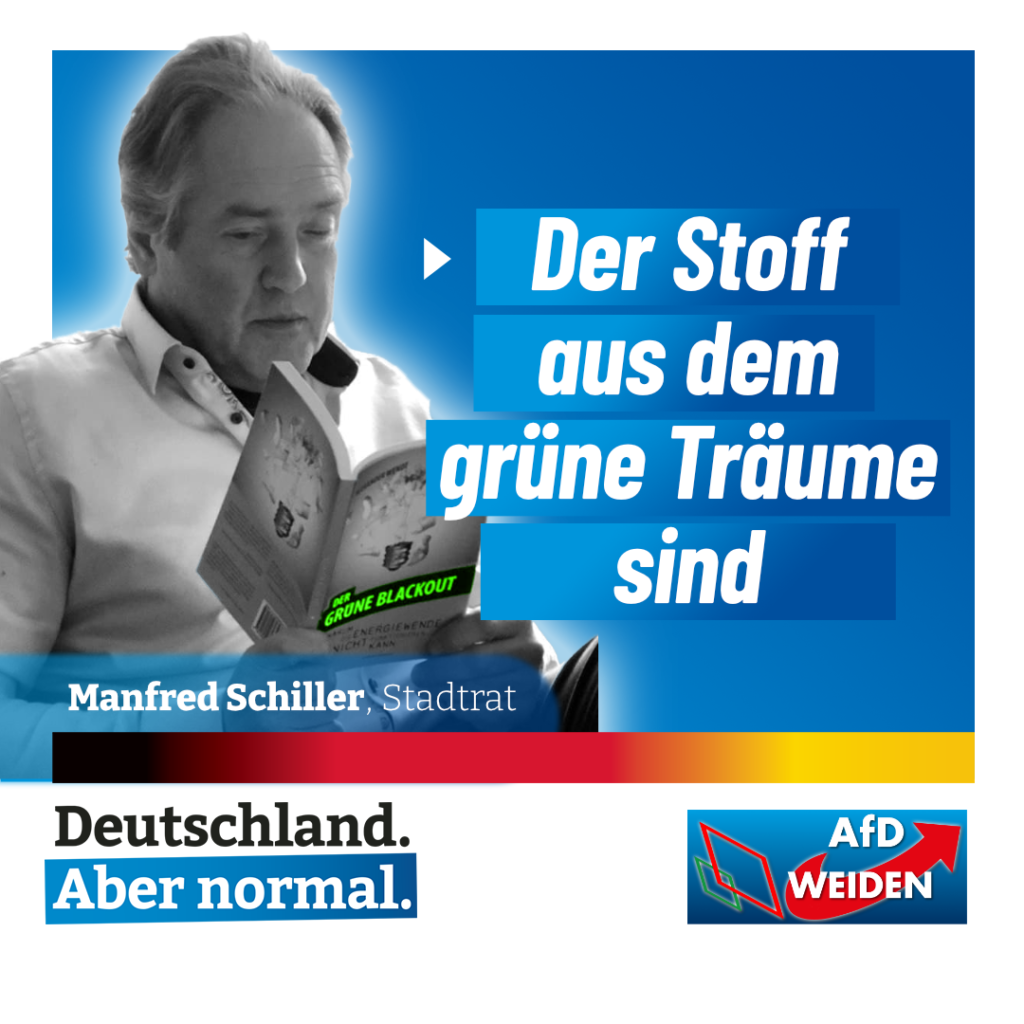 Wir gratulieren Manfred Schiller, unserem Kandidaten zur Bundestagswahl 2021. Herzlichen Glückwunsch zur erfolgreichen Wahl. Der AfD KV-Weiden steht dir geschlossen zur Seite. Vollständige Pressemitteilung: AfD Weiden schickt Stadtrat Manfred Schiller […]