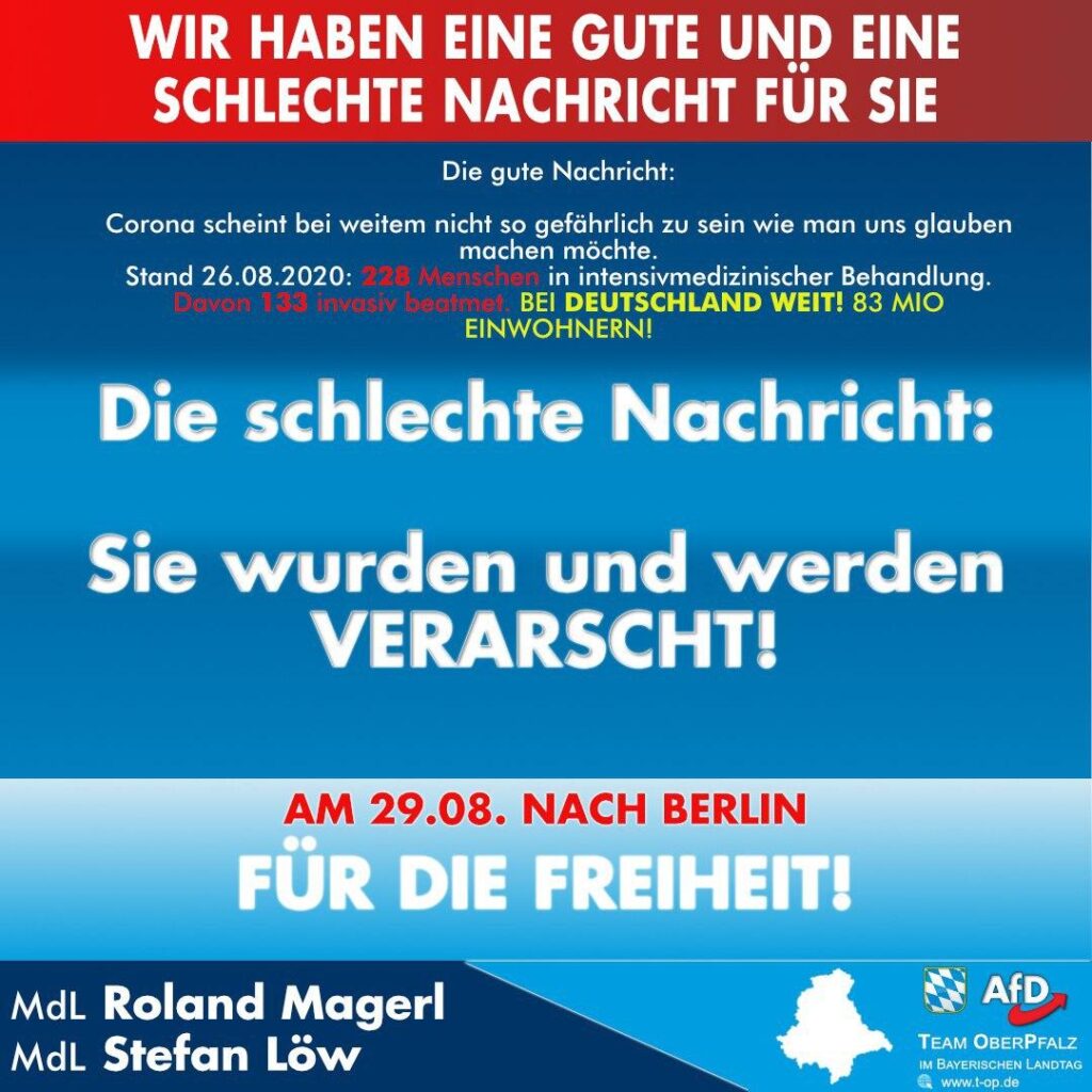 Auch die AfD-Weiden war am 29.08.2020 in Berlin dabei. Es waren viele Demonstranten. Es waren sehr viele Demonstranten! Es waren unterschiedliche Demonstranten. Und es waren, zumindest an den Orten an […]
