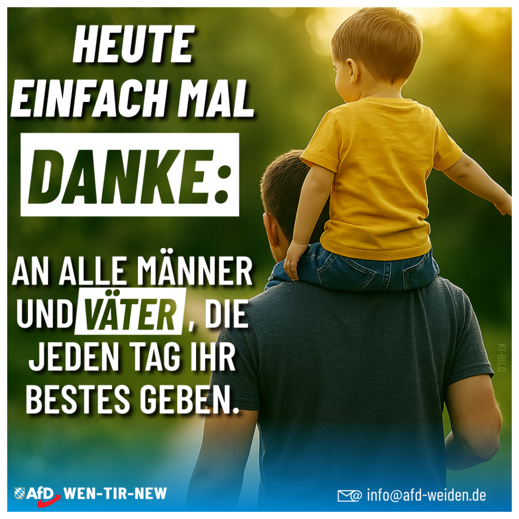 für ihre unermüdliche Arbeit und ihren Einsatz für unsere Familien und unsere Heimat. Väter sind das Rückgrat unserer Gesellschaft – sie geben Halt, Orientierung und Sicherheit. Herzlichen Dank!