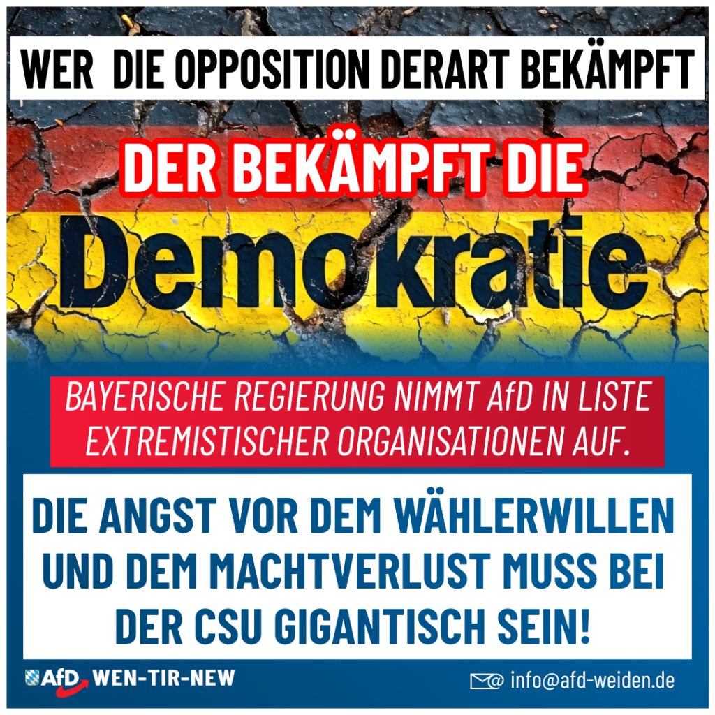 Die Bayerische Staatsregierung hat die AfD offiziell als „extremistische Organisation“ eingestuft. Ein Schritt, der nicht nur durchsichtig, sondern auch gefährlich ist. Man will die AfD somit auf die gleiche Stufe […]