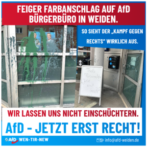 Farbanschlag auf unser AfD Bürgerbüro in Weiden
