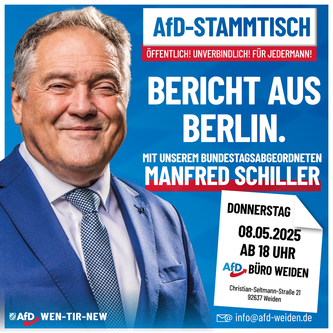 Während Berlin im Machtchaos versinkt und sich Friedrich Merz durch die Hintertür ins Kanzleramt schiebt, laden wir zur offenen Diskussion mit unserem Bundestagsabgeordneten Manfred Schiller.