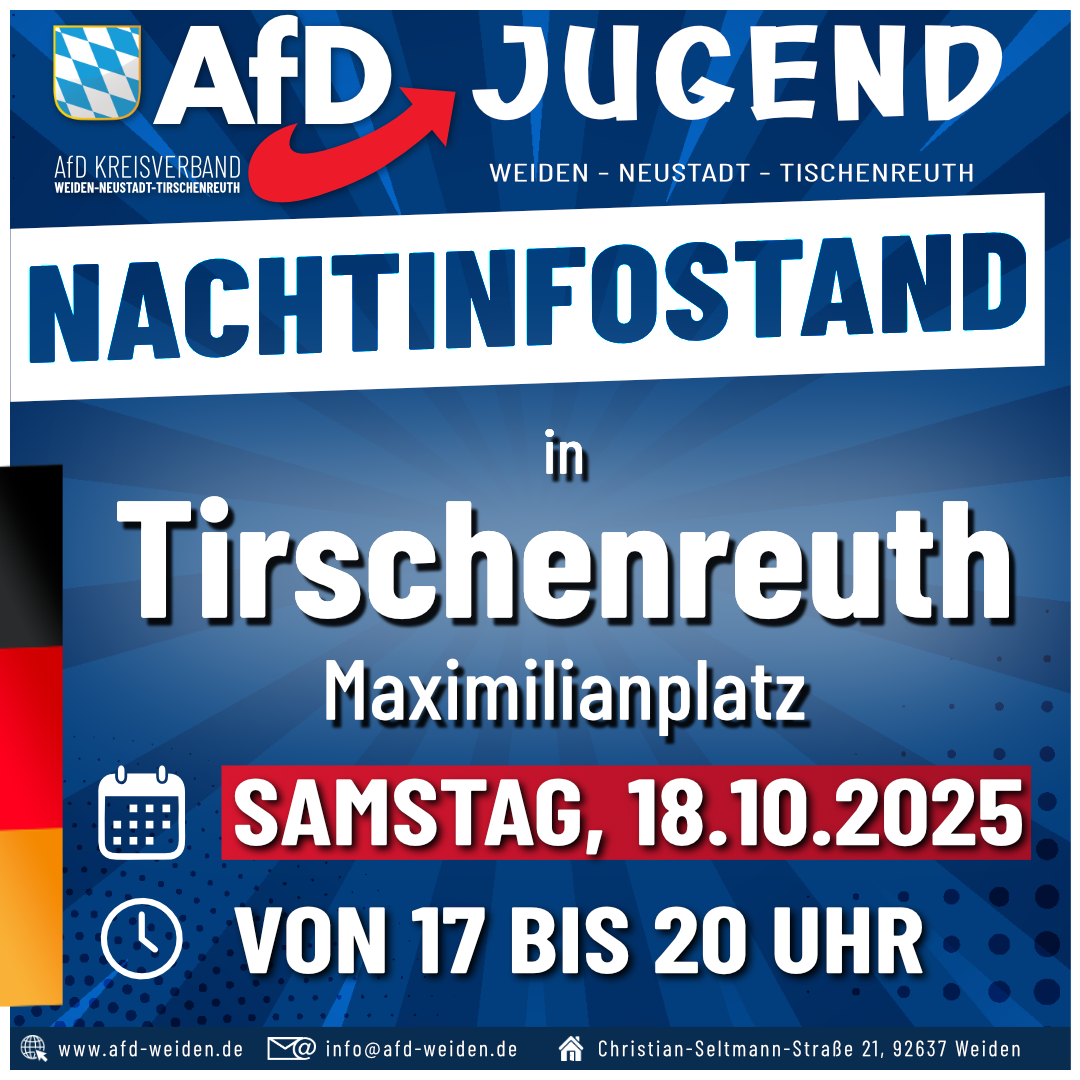 Nachtinfostand der AfD Jugend – Wir sind am 18.10.2025 für euch in Tirschenreuth!