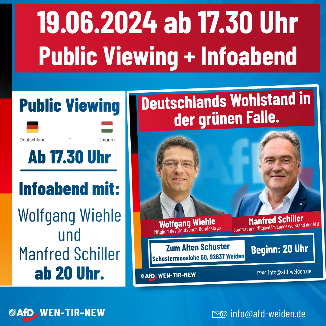 Am 19.06.2024 veranstalten wir beim Alten Schuster in Weiden zuerst ein Public Viewing.